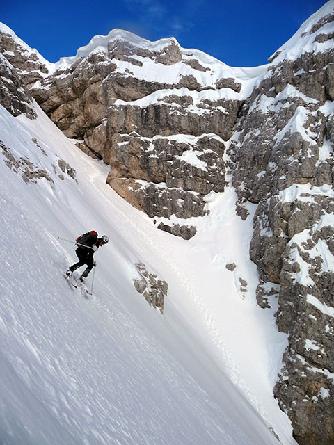 Na rampi proti spodnjemu delu žlebu.