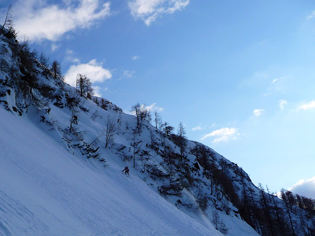 Iskanje 'skritih' prehodov na kar strmem pobočju (nekje med 40° in 45°).