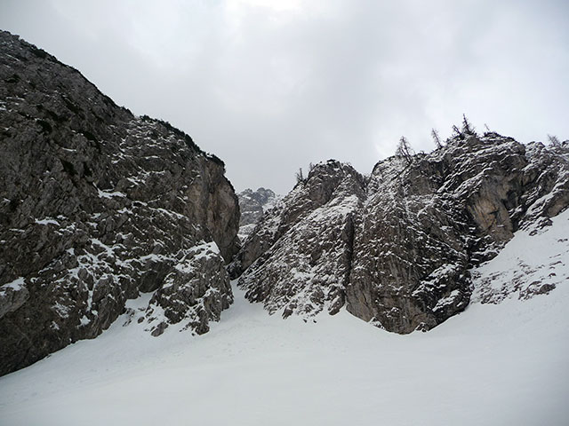 Nad žlebom se odkrivajo vršne špice Velikega Nabojsa.