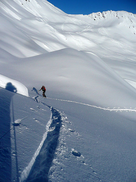 Iskanje najboljše smeri pristopa na vabljivi Klenitzenkopf.