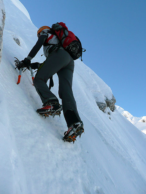 Potem sva šla čisto desno okoli robu, kjer se odpre res atraktiven izstop na Grebenc.