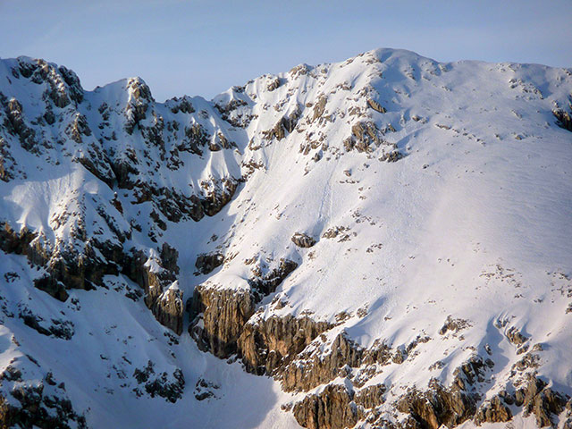 Najbolj zanesljiva smučarska varianta je s strehe po prečnici in skozi ožino.