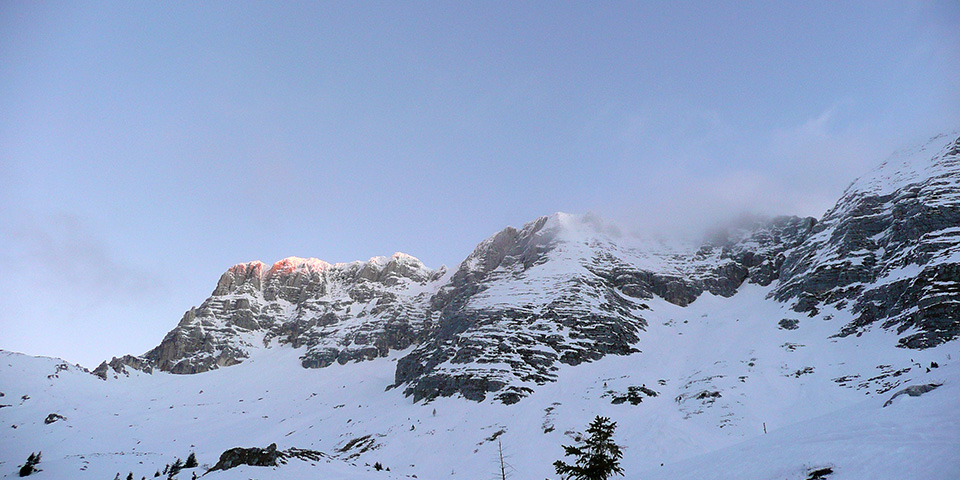 Prvi žarki na grebenu Poliških Špikov.