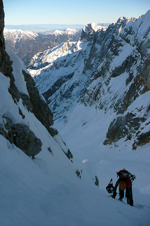 Žleb, ki vodi naravnost na vrh Male Martuljške Ponce.