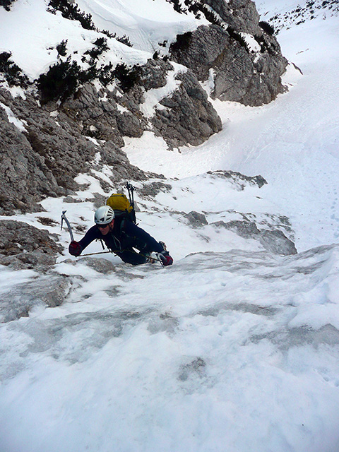 V 'Kr eni smeri' v S steni Begunjščice, še boljše ime bi bilo 'Za nosom'.