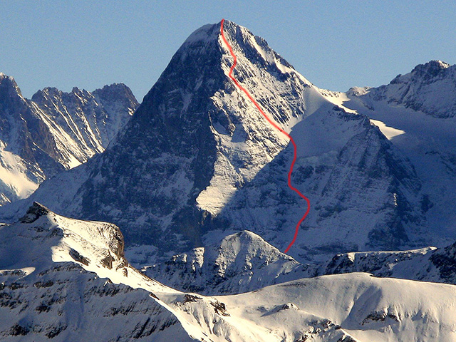 Eiger, Westflanke, SS+, 1200 m; primerjalno je smer nekje v rangu naših smučarskih (švoh) petic.