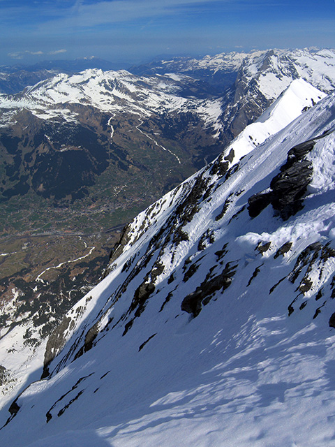 Pogled navzdol po S steni; točno v Grindelwald. (©bostjan)