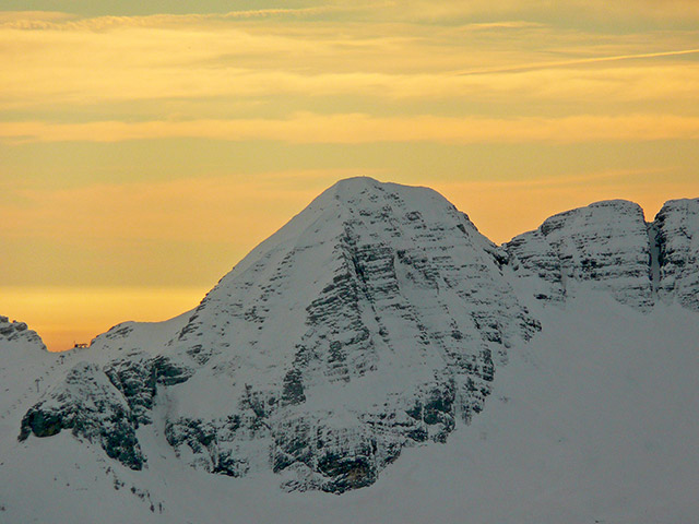 Prestreljenik posnet pozimi z Viša: levo od vpadnice je SV stena, 50-55°, 300 m.