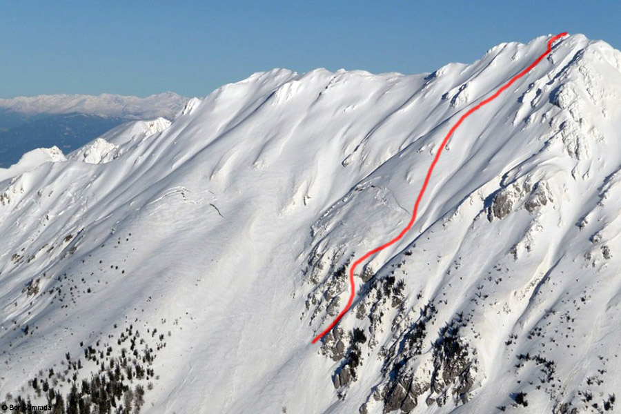 Vrtača, Južne vesine, T+, 40°, prehod 45°, 400 m, izpostavljeno. (©bor)