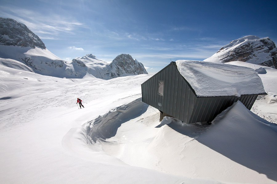 Tale gmota snega na strehi je v torek splazila in sprostila vhodna vrata. (©jaka)