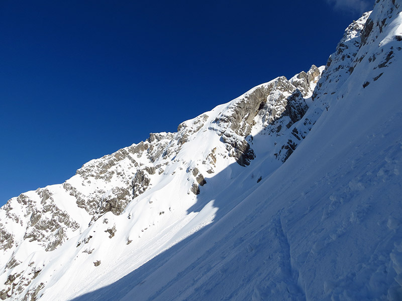 V sredini vstopni/težji del smučarske smeri Severne vesine.