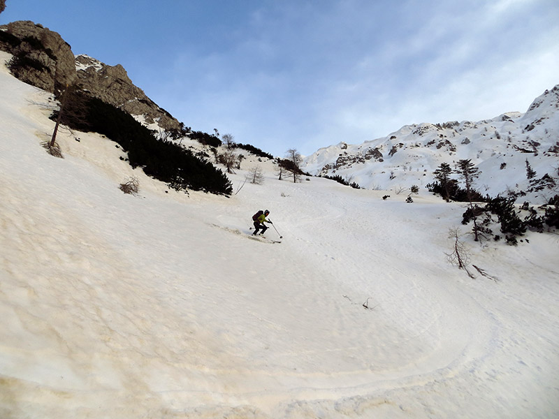 Po širokem prehodu med rušjem lahko obvozimo ožji del grape.