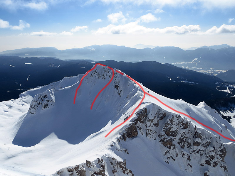 Z leve: Severni greben, Severna grapa, proti Srenjskemu prevalu in Leva grapa (jugozahodna grapa).