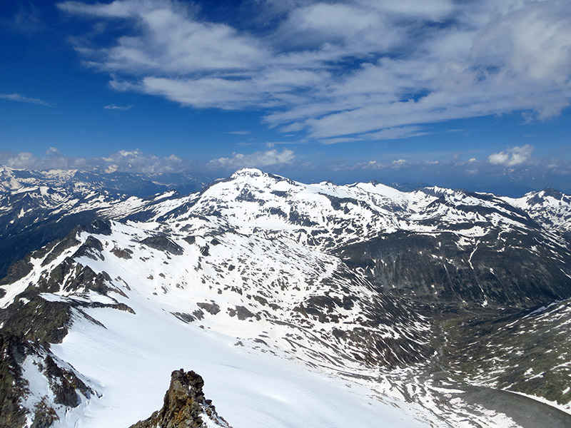 Ankogel, začuda so bila vršna vzhodna pobočja nad jezerom Plessnitz še lepo zalita.
