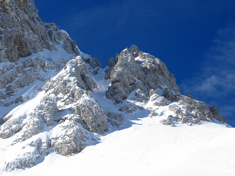 Grapa v SZ grebenu Jalovca, tik ob rami nad Kotovim sedlom.