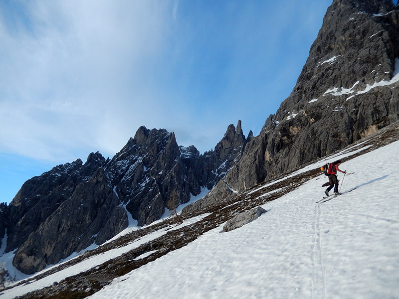 V Vallon Popera, zadaj Monte Bagni in Campanili di Popera.