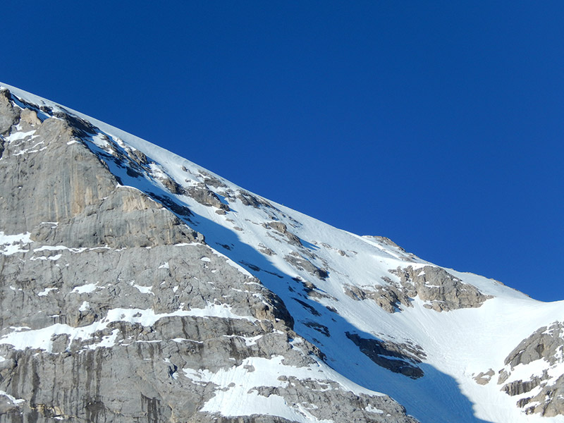 Severna 'stena' Marmolade je letos slabše zalita kot lani.