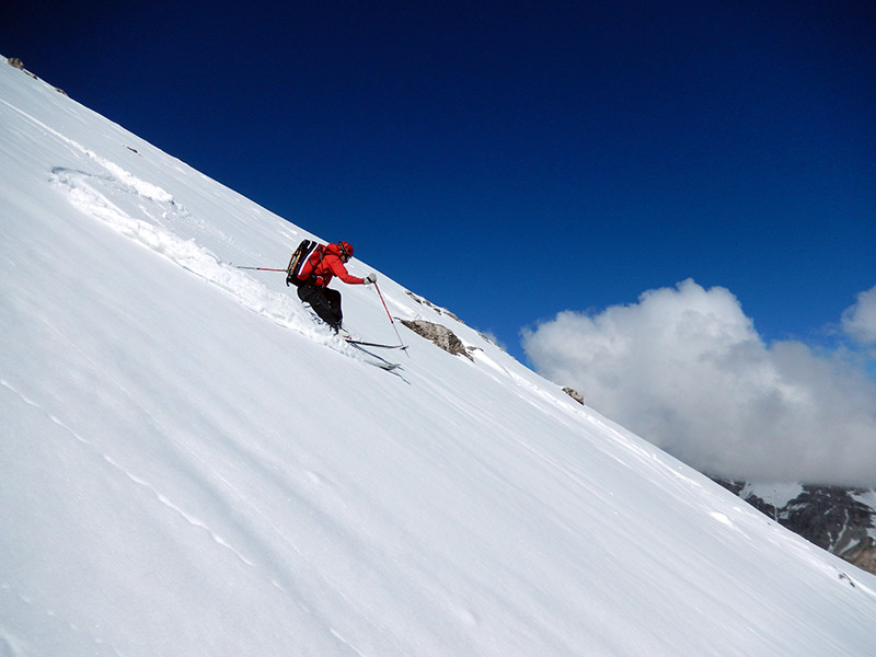 Nižje se je tudi s širokimi dilami večkrat prav nemarno vdrlo v snežno podlago.