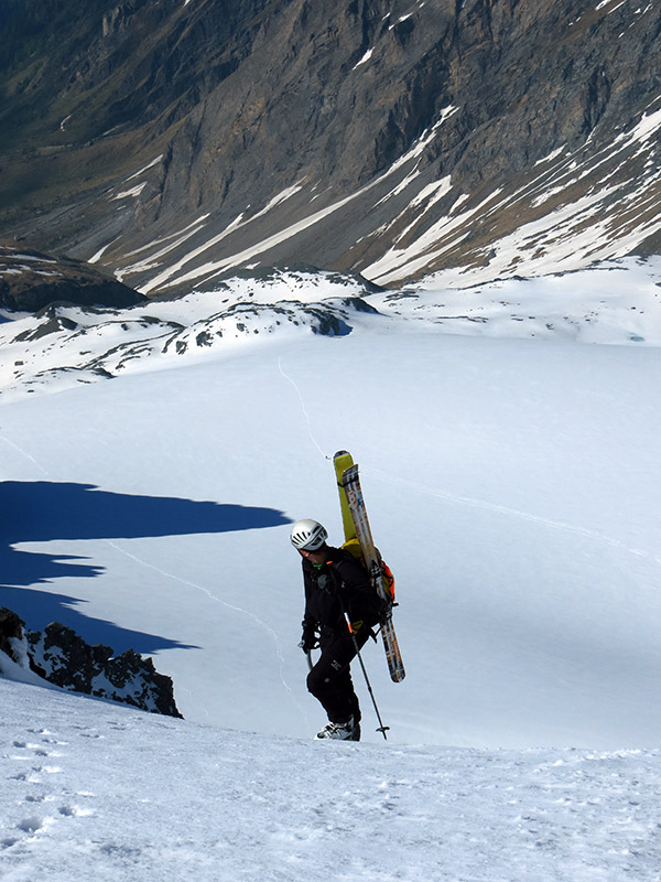 Na edinem dobro pomrznjenem odseku, direktni prehod na greben nad Adlerco.