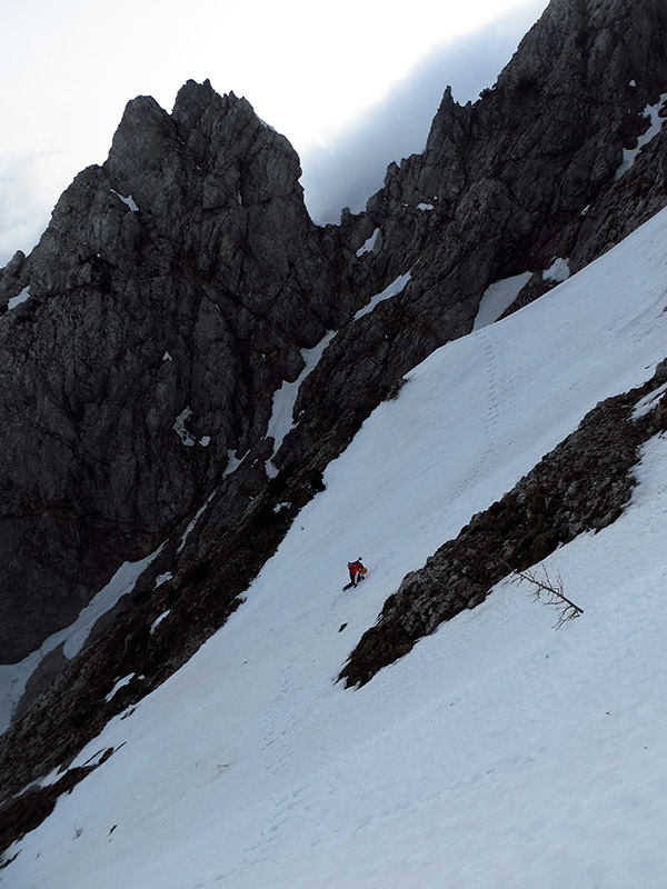 Ključ smeri: zelo izpostavljena rampa, ki vodi iz vstopnega žlebu.