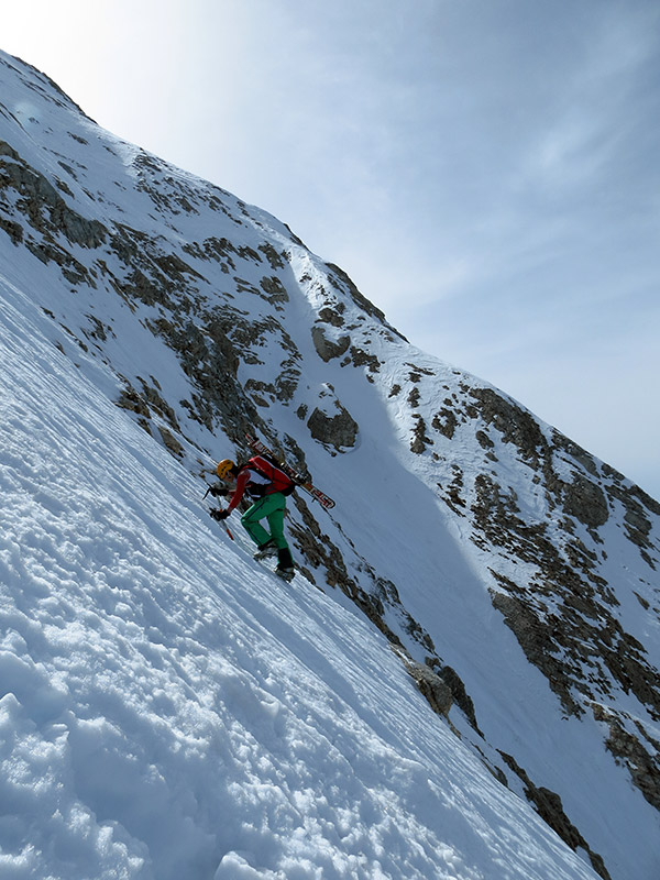 Na vmesnem robu: ključni del smeri, kjer je potrebno poiskati zasnežen prehod. Če je dovolj snega, je možnosti več.