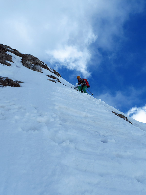 Zoprna prehoda proti rampi - previdno čez dve mesti poprhani s snegom.