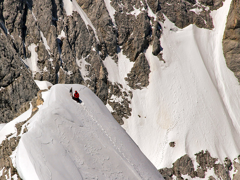 Marko na koti 2451, zadaj sledi jutranjega obrata pod Oltarjem. (©jure)