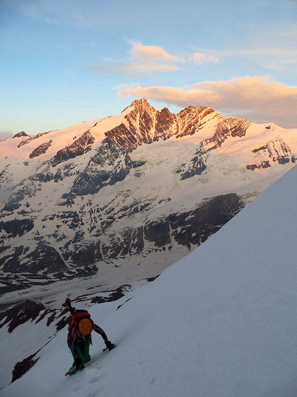 Ob sončnem vzhodu se je pordečilo na Grossglocknerju.