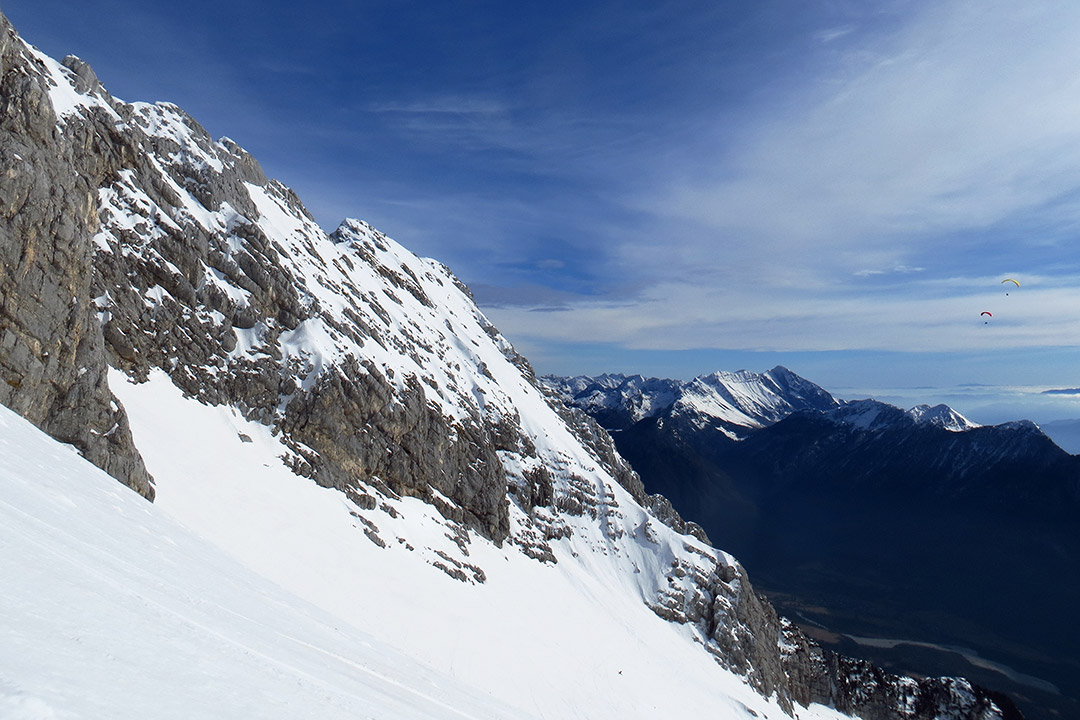 Veliki Stador: Smučarska (jugozahodna stena), Z+, 45°, 200 m, izpostavljeno. Prvi smučarji so jo ocenili s staro petico.