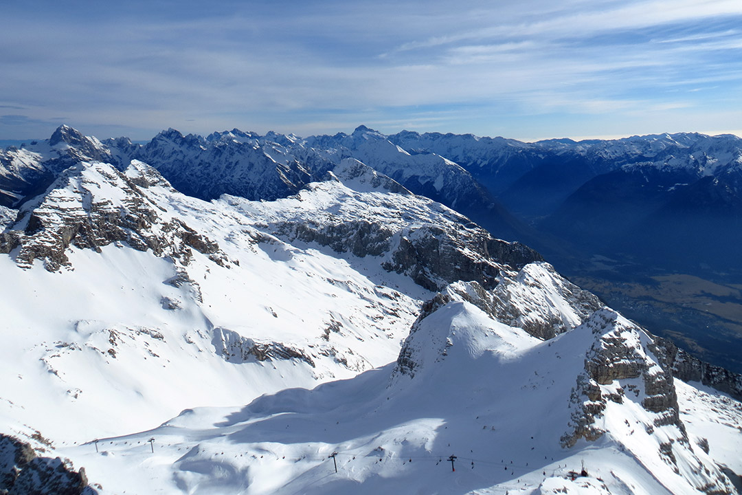 Desno spodaj Ovčji in Grdi Vršič, zadaj med njima strma vesina Velikega Stadorja.