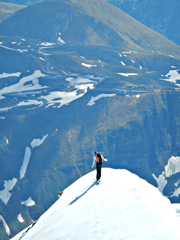Povečava. Desna smučina je pristopna, od 'norih' Avstrijcev. Spust je bil tečen, trapasta in nepredvidljiva skorja.