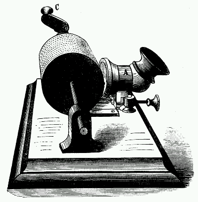 govoreči stroj - fonograf, ki je bil prednik gramofona. Edison je pomembno