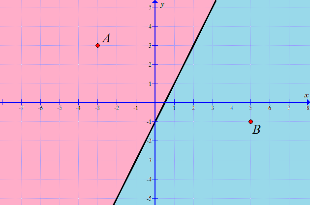 (d) Find points which are closer to \(A\). Colour them in red.