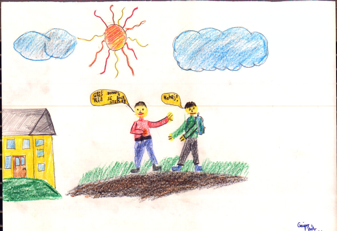 MOJ PRIJATELJ JE DOMEN, KER SE SKUPAJ IGRAVA. TJAŠA JE MOJA PRIJATELJICA, KER SE SKUPAJ ŽOGAVA. (MATIC PODLOGAR)