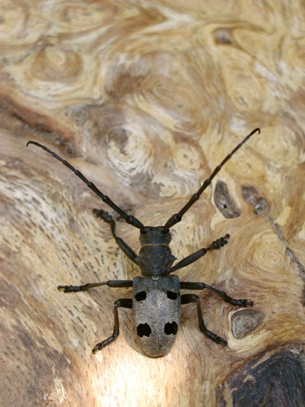 Na hrbtni strani pokrovk ima na vsaki strani po dve črni pegi.