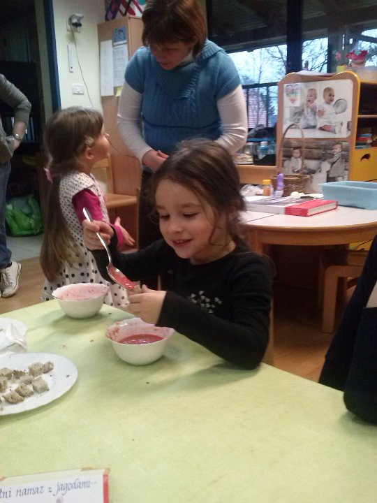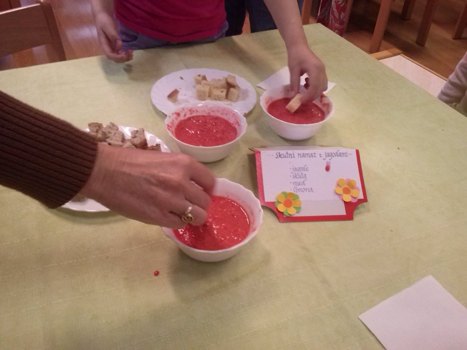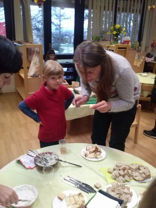 Ob materinskem dnevu smo z mamicami pripravljali slastne namaze. Prijeten klepet in pokušina prigrizkov nam je vsem skupaj polepšalo 25. marec.