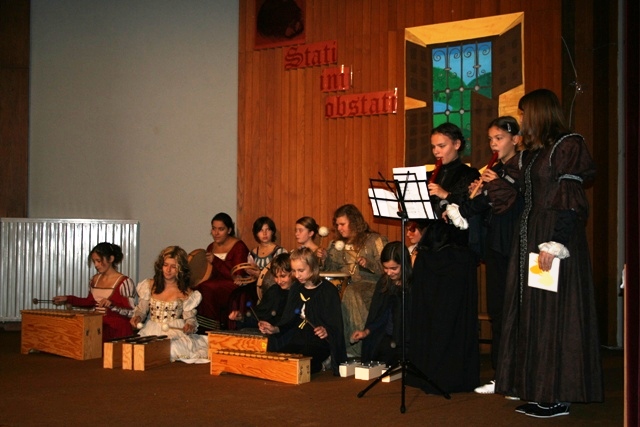 v obleke, ki so jih nosili v tistih časih. Učenci so