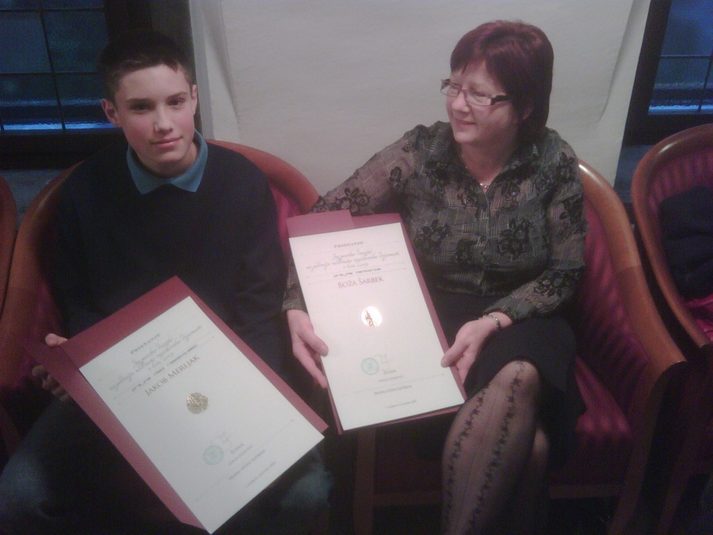 razreda Jakob Merljak in njegova mentorica gospa Boža Šarbek.