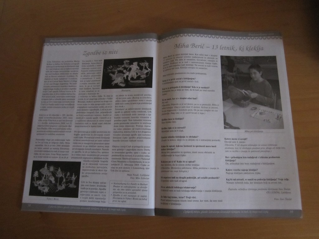 Objavljen je bil v ČIPKARSKEM BILTENU, časopisu, ki ga izdaja