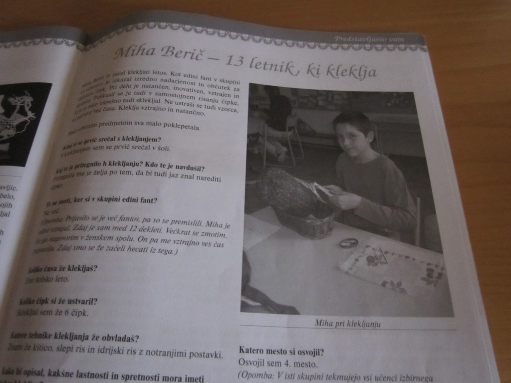 Berič je letos začel klekljati. Kot edini fant v skupini 13 učencev