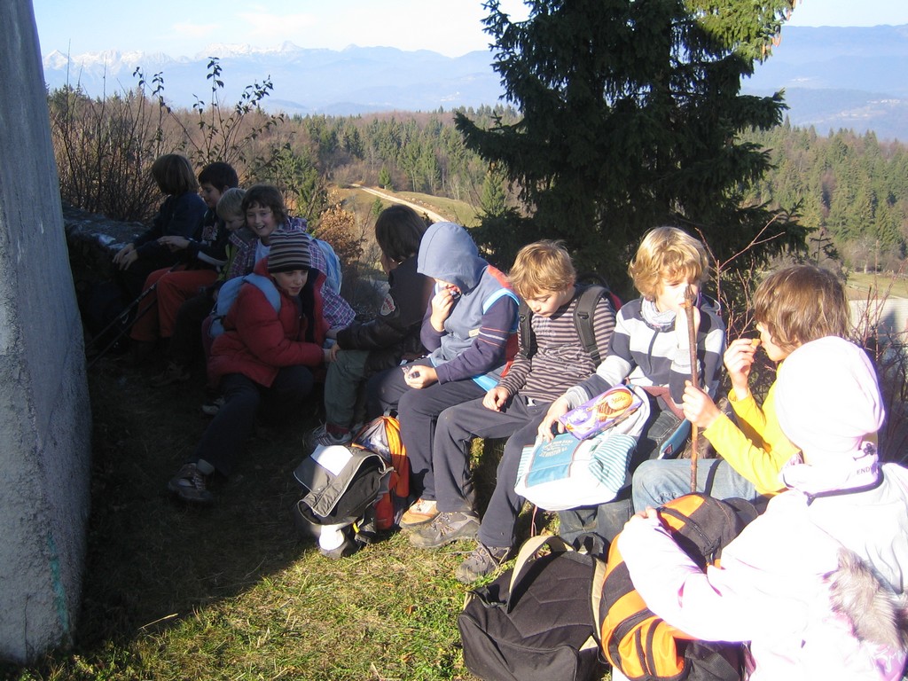 ustavili pri koči in pojedli priboljške. Lepo je bilo.«