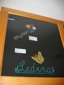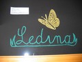je na podlagi znaka šole zrisala vzorec metulja, napis Ledina