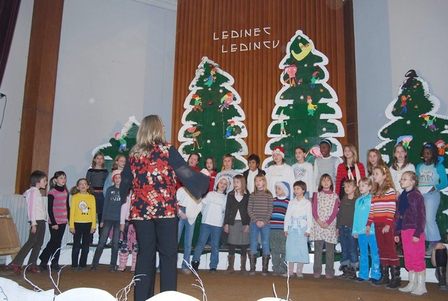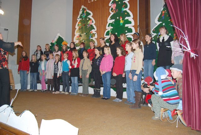 vodstvom gospe Monike Donko. Učenci so zapeli dve praznični