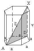 Razdalja AX je premer krogle in jo izračunamo kot hipotenuzo pobarvanega trikotnika ADX: