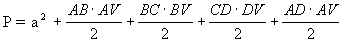 Plašč sestavljajo štirje pravokotni trikotniki ABV, BDV, CDV in DAV. Vsakemu izračunamo ploščino po obrazcu