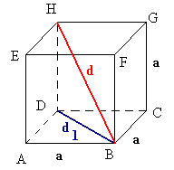 skozi nesosednja vzporedna robova. Diagonalni presek kocke je pravokotnik z dolžino d1 in širino a. ploščina preseka = d1 . a