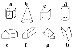 - Upodobljena so nekatera geometrijska telesa. V okvirček zapiši črko, ki j