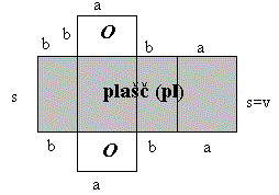 Ploščino plašča (na sliki je to osenčen pravokotnik) izračunamo: