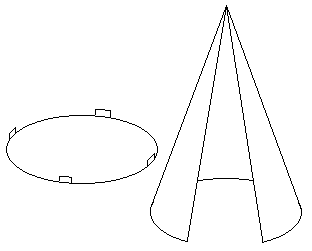 (pl) in ena osnovna ploskev. Osnovna ploskev je krog. Če plašč