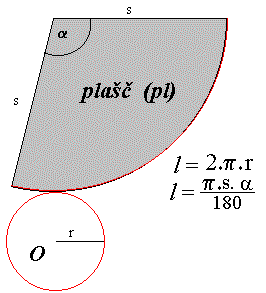 ploščino krožnega izseka, ki predstavlja plašč stožca, pa